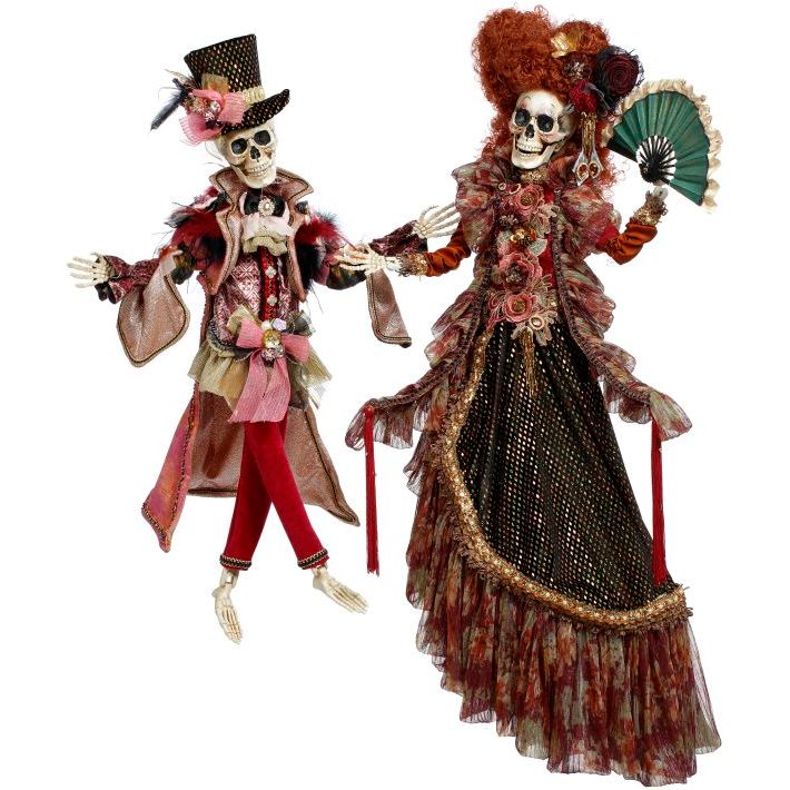 Skeletal glamour for the afterlife! These Mr and Mrs Red Carpet Skeleton (32") (SKU: 51-58434), designed by Mark Roberts, strut with Hollywood flair and hand-painted opulence. A must for luxe Halloween decor. Certificates of authenticity included – where death meets decadence.
