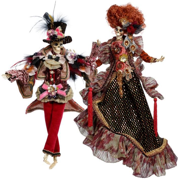 Red Carpet Skeletons (20") SKU: 51-58432 Bring Star Power! Mark Roberts' Design Features Miniature Oscar Statuettes, Sequined Gowns, And Poseable Arms For Celebrity-Worthy Halloween Displays.